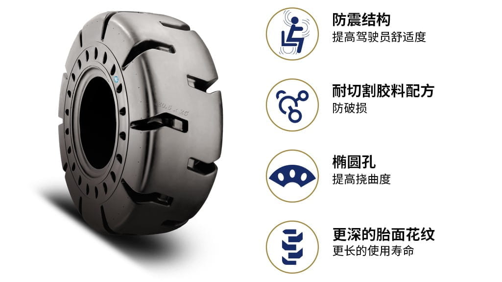 Brawler HPS Soft Ride专门为废品回收和垃圾管理而设计,它不仅有传统实心轮胎的结实耐用,而且提供了与充气胎相似的驾驶舒适感受。